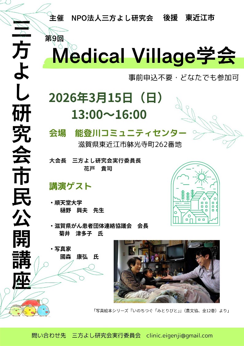 『日本Medical Village学会』設立の目的は、がん患者さんが最期まで安心して暮らすことが出来る場所(Medical Village)を地域に創ることです。Medical Villageとは、がん患者さんを癒すことのできる村です。