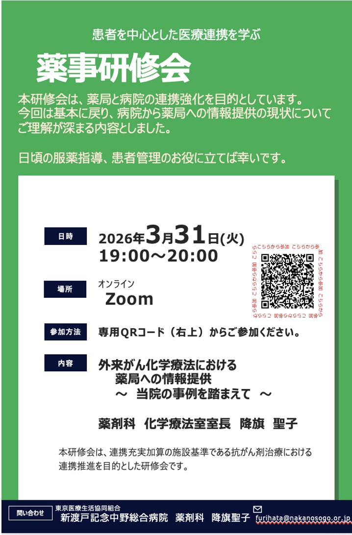 保険薬局の皆様へ 薬事研修会のお知らせ